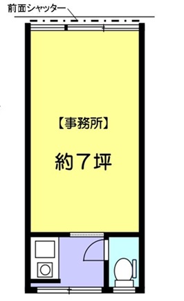 トイレ・キッチン・エアコン付き。約23㎡のコンパクトな1階路面事務所です。