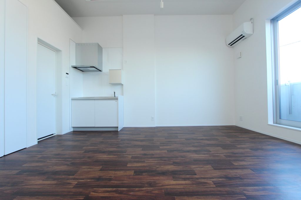 お部屋は約30㎡の1Rで、水回りの設備がまとめられているのでレイアウトの自由度が高められています。