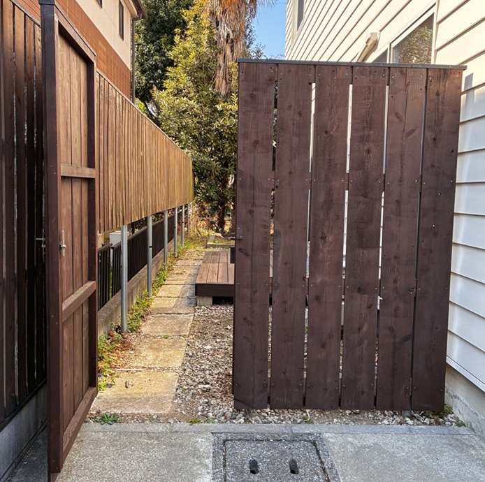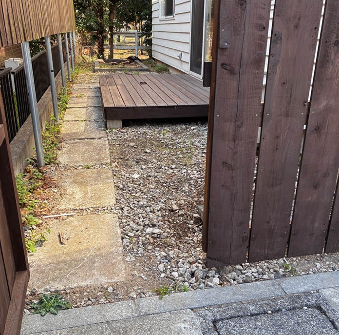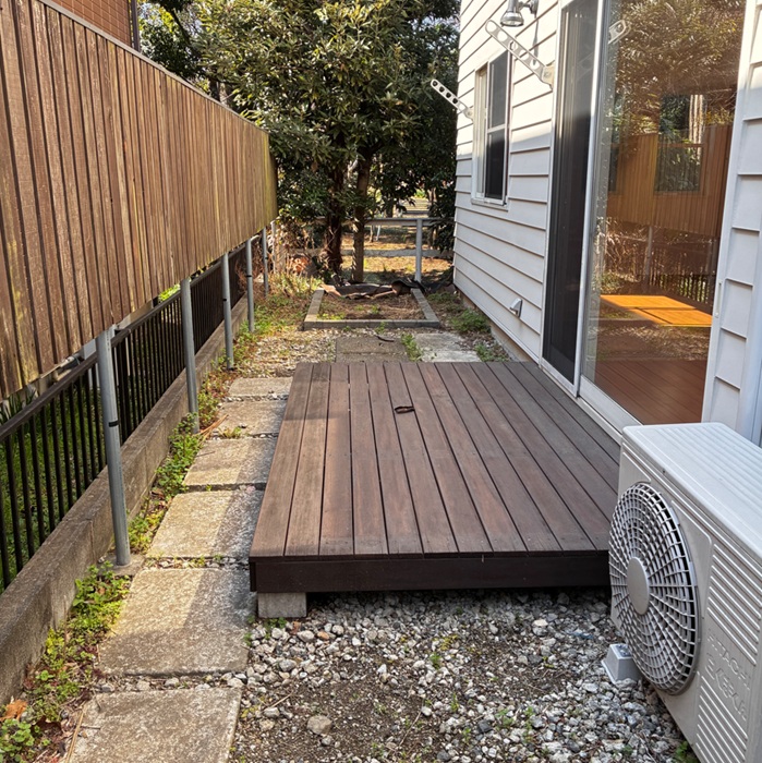 洗濯物の干し場としてウッドデッキが設置されていますが、庭部分では木枠の作成や簡易の塗装など、室内でやりにくい作業を庭で行う事が可能です。