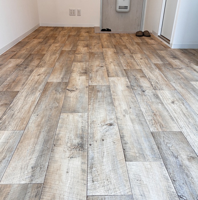 間仕切りが無いためデッドスペースが少なく、玄関側とバルコニー側に広めの壁面があるので、壁掛けで絵を描く方も使いやすいと思います。